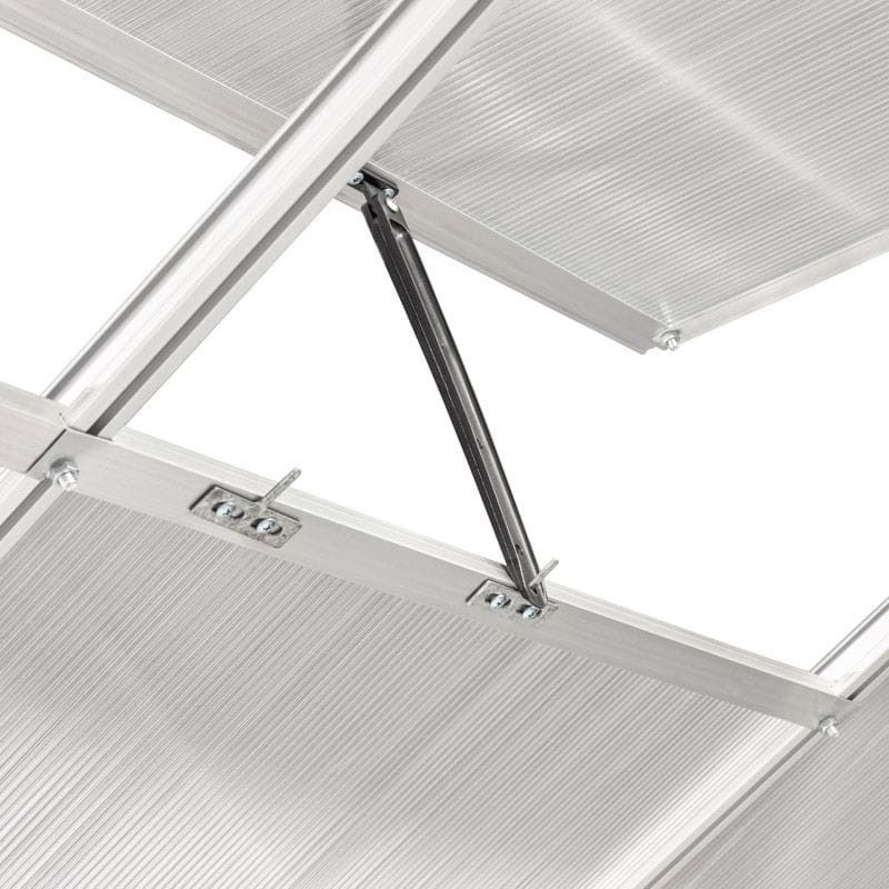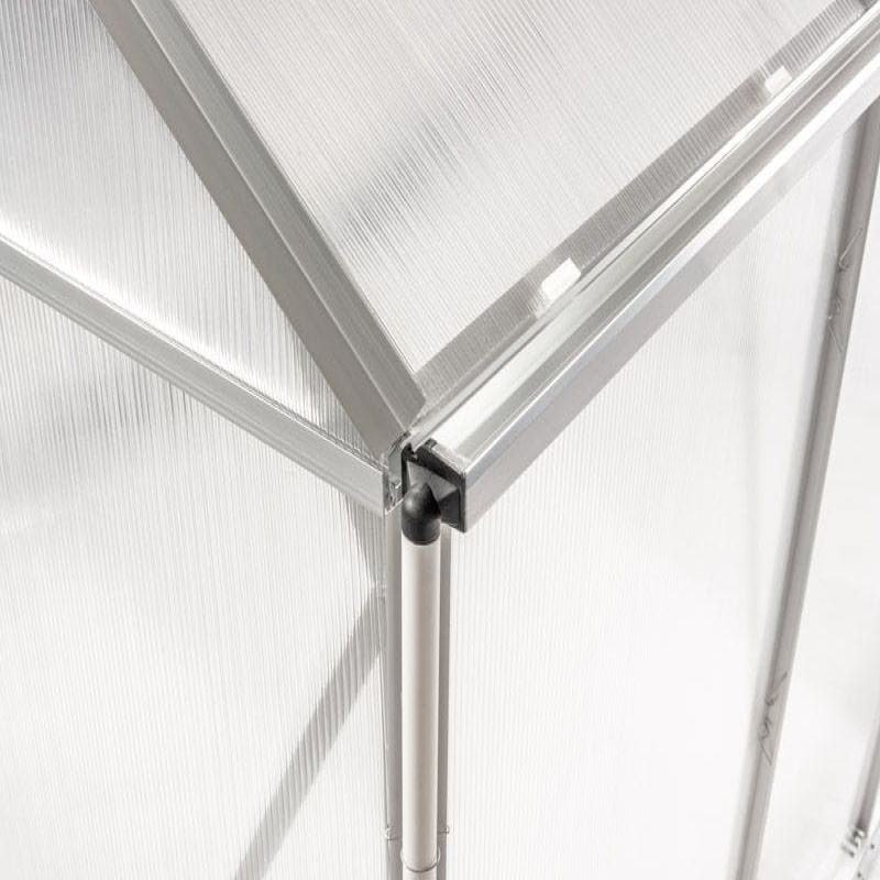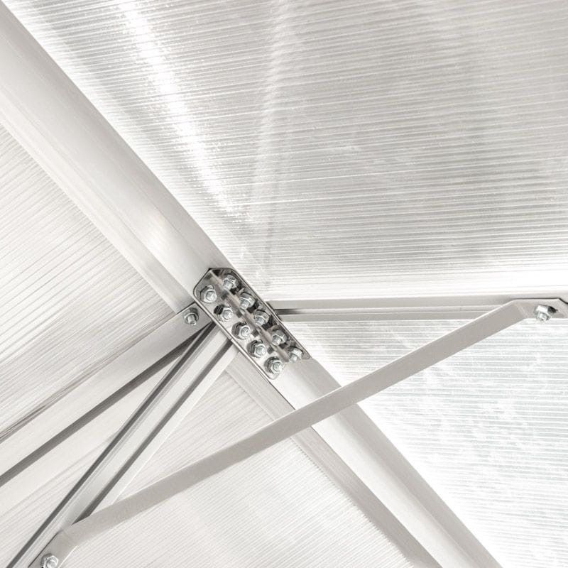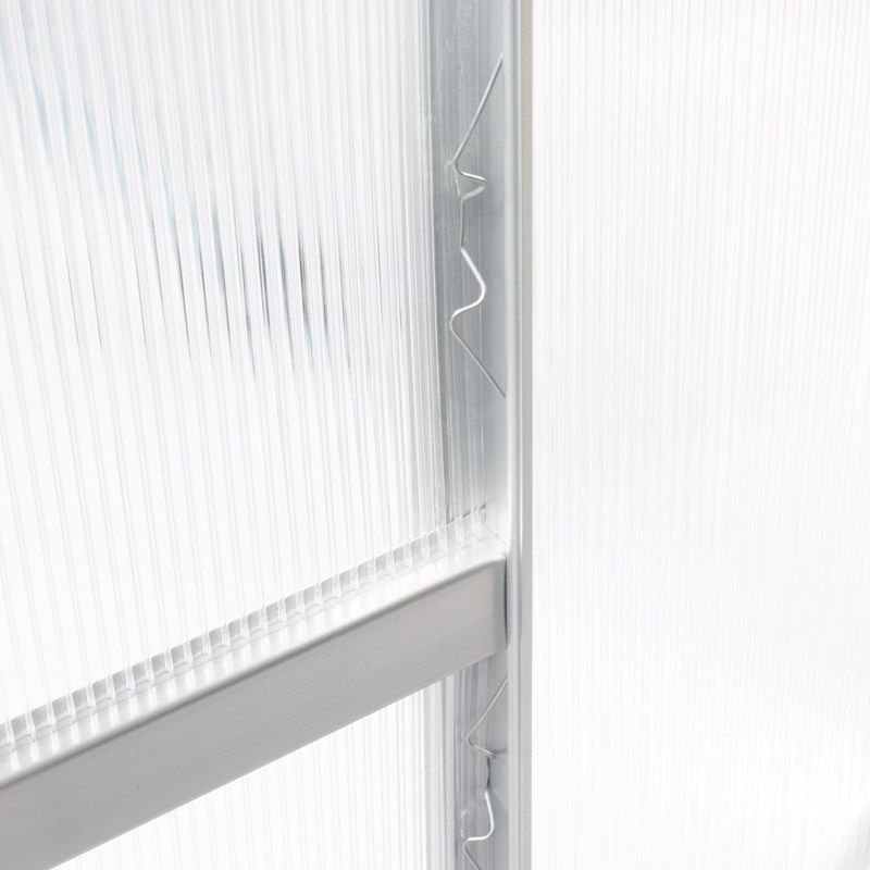 Ökotermesztés - funkcionális polikarbonát üvegházA polikarbonát kerti üvegház hatékonyan védi a növényeket a kártevőktől, a madaraktól és a kedvezőtlen időjárási körülményektől. A kerti üvegház használatával meghosszabbítható a vegetációs időszak, ami kedvező feltételeket biztosít a növények fejlődéséhez, és pozitívan befolyásolja a betakarított termés mennyiségét. A polikarbonátból készült üvegház kiválóan alkalmas ehető és dísznövények termesztésére egyaránt. Polikarbonát üvegház - optimális feltételek a növények számáraA kerti üvegház falai 4 mm vastag, átlátszó polikarbonátból készülnek, biztosítva a megfelelő fényáteresztést, ami elősegíti a termés megfelelő növekedését. Az üvegház formáját gondosan úgy alakították ki, hogy a fényt egyenletesen oszlassa el benne. A szerkezet további előnye a tető kedvező formája, amely lehetővé teszi a vízgőz szabad eltávozását, ami megvédi a növényeket a betegségektől. Polikarbonát üvegház - könnyen összeszerelhetőAz üvegház vázszerkezete alumíniumból készült, ami hatékonyan minimalizálja a korrózió kockázatát . Az acél alapzat jelentősen hozzájárul a kerti üvegház szerkezetének stabilitásához és szilárdságához. Ennek a szerkezetnek további előnye a könnyű összeszerelés és a lehetőség, hogy bárhol elhelyezhető a kertben vagy a telken.