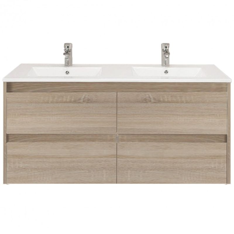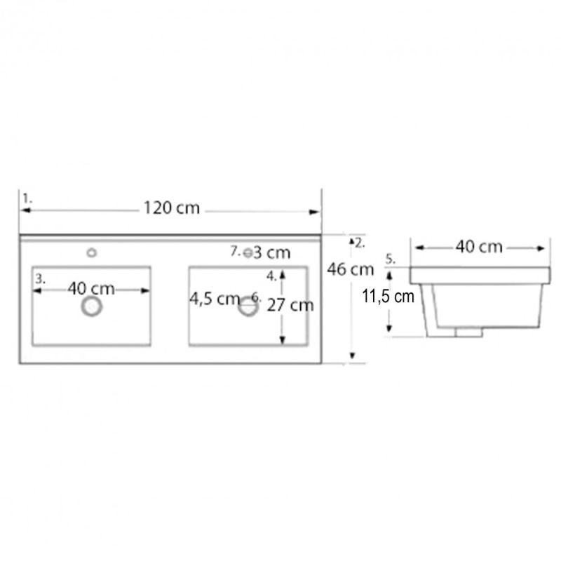 A csomag részét képzi egy méretben passzoló kerámia mosdó is, így ezt nemkell külön beszereznie. A mosdó elkészítésekor kiváló minőségű kerámiát alkalmaztak, ezzel garantálva az időtállóságot. A mélymedencékkel ellátott dupla medencés mosdóban két csaptelepnek van kialakított hely. Ebből adódóan nagyobb családok számára is ideális választás hiszen így nem kell sorban állni egy-egy kézmosás alkalmakor.