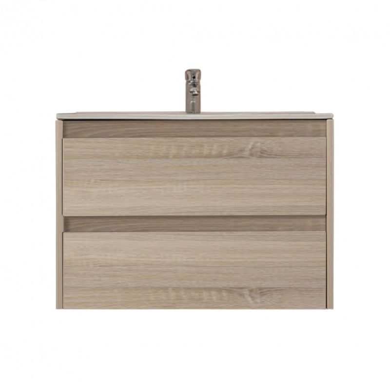 A fürdőszoba bútor kevés helyet foglal viszont rendelkezik két tágas fiókkal ahol kényelmesen elférnek a fürdőszobai pipere eszközök. Kevés helyigénye miatt kisebb fürdőszobák berendezésére is alkalmas, például panel lakásokban. A termék magas minőségű bútorlapból készül és színben passzoló élzárókkal van ellátva. A fürdőszoba bútor felfüggesztett kivitelben kapható.