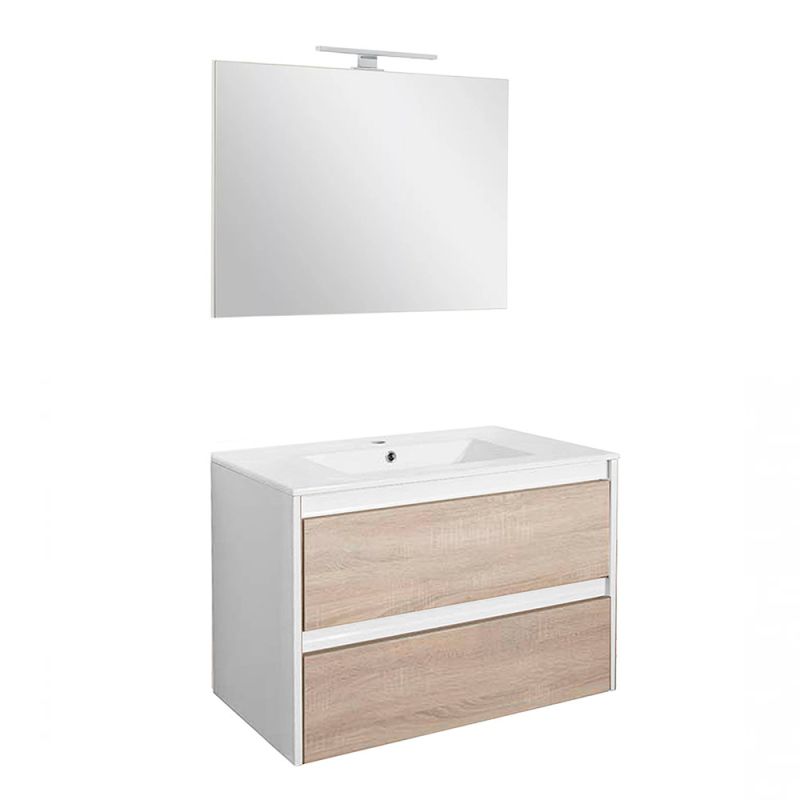 Leziter Porto Prime 80 komplett fehér–sonoma tölgy – alsó szekrény mosdóval és CUBE tükörrel