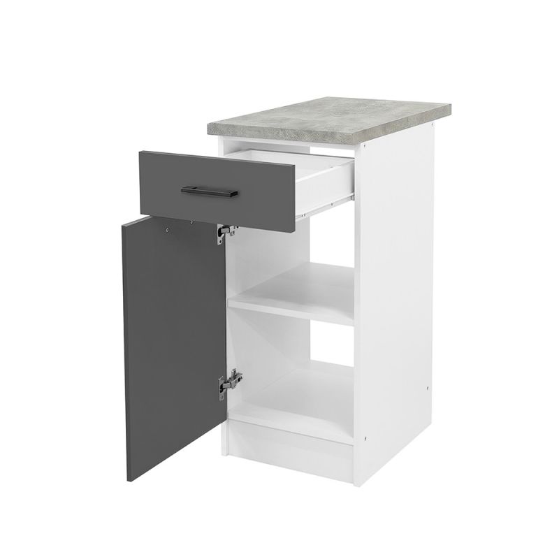 Praktik 40 alsó szekrény 1 ajtós 1 fiókos – fehér korpusz, antracit front