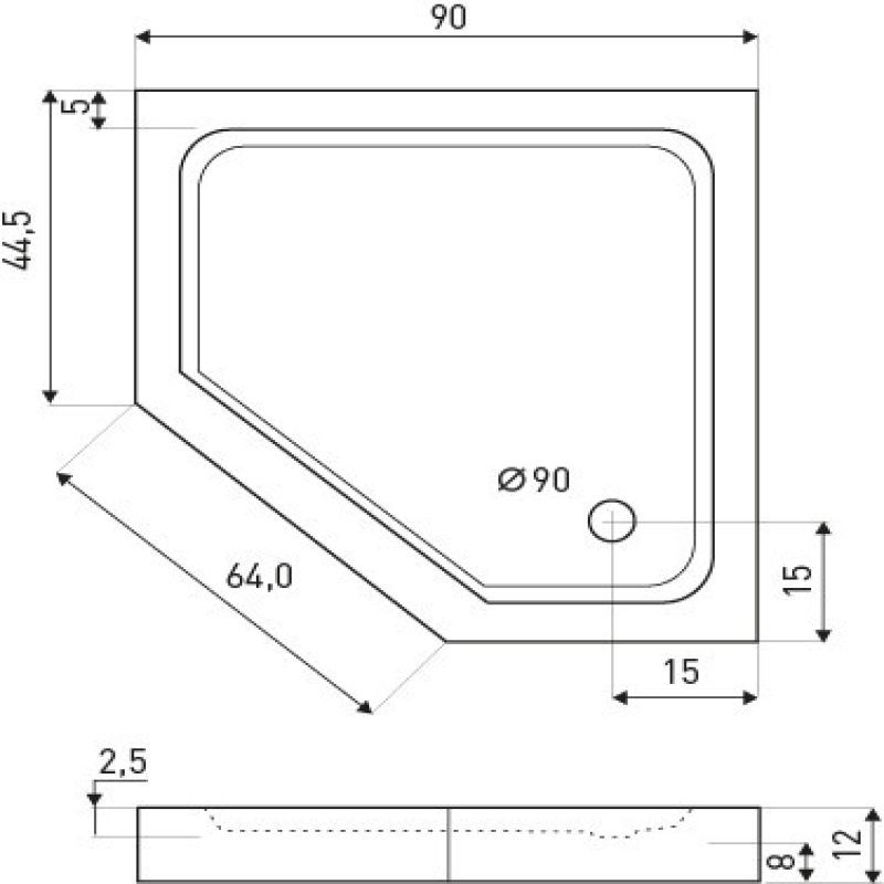 Prato 90 BL szögletes fekete akril zuhanytálca
