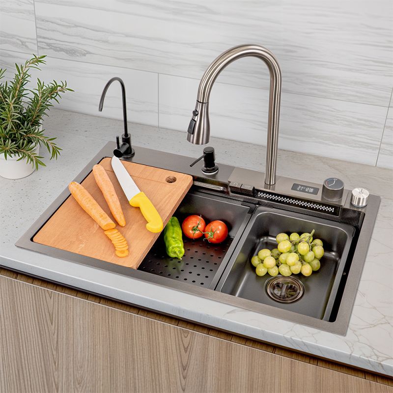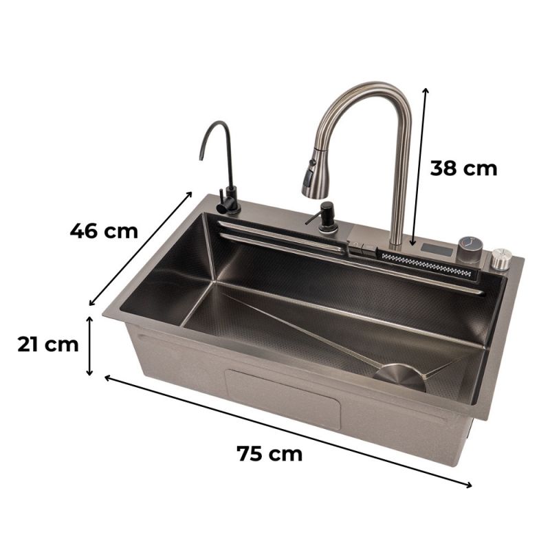 A 304-es rozsdamentes acél és a fekete szálcsiszolt felület garantálja a hosszú élettartamot és az időtálló megjelenést. A nano bevonat védi a mosogatót a karcolásoktól és a szennyeződésektől, így könnyebben tisztán tartható.