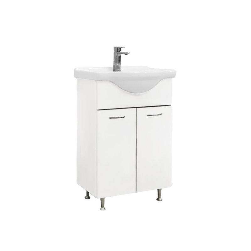 A fürdőszoba bútor kevés helyet foglal viszont tágas alsó szekrénnyel rendelkezik ahol kényelmesen elférnek a fürdőszobai pipere eszközök. Kevés helyigénye miatt kisebb fürdőszobák berendezésére is alkalmas, például panel lakásokban. A termék magas minőségű bútorlapból készül és színben passzoló élzárókkal van ellátva. A fürdőszobabútor álló kivitelben kapható.
