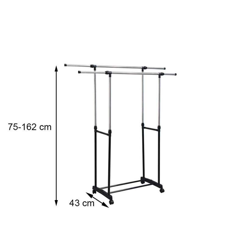 - Állítható magasság: Az állvány magassága 75 cm és 162 cm között állítható, így különböző méretű ruhák tárolására is alkalmas, legyen szó hosszú kabátokról vagy rövid blúzokról.