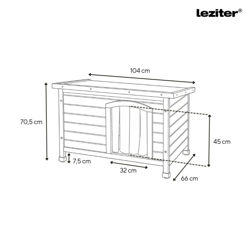 Az állítható magasságú, gumis sapkával ellátott lábak stabil tartást biztosítanak, miközben védelmet nyújtanak a talajnedvesség ellen. A talajtól elemelve kialakított szerkezet lehetővé teszi a levegő áramlását a kutyaház alatt, ami segít megóvni kedvencedet a talaj hidegétől és nyirkosságától.