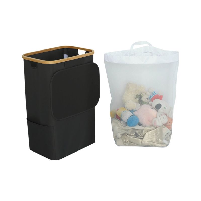 Leziter szennyeskosár fekete színben – 100 literes kapacitás, modern stílus, praktikus kialakítás Ez a 100 literes Leziter szennyeskosár ideális választás a fürdőszobába vagy hálószobába, ha nagy kapacitásra és letisztult megjelenésre vágysz. A kivehető, füles belső zsáknak köszönhetően a mosás előtti rendszerezés gyors és higiénikus. Stabil, helytakarékos kialakítása és természetes hatású színvilága modern otthonokban is tökéletesen megállja a helyét. Elérhető három színben – szürke, fekete és bézs – így könnyen rendszerezheted a ruhákat szín szerint. Alapadatok: - Kapacitás: 100 l