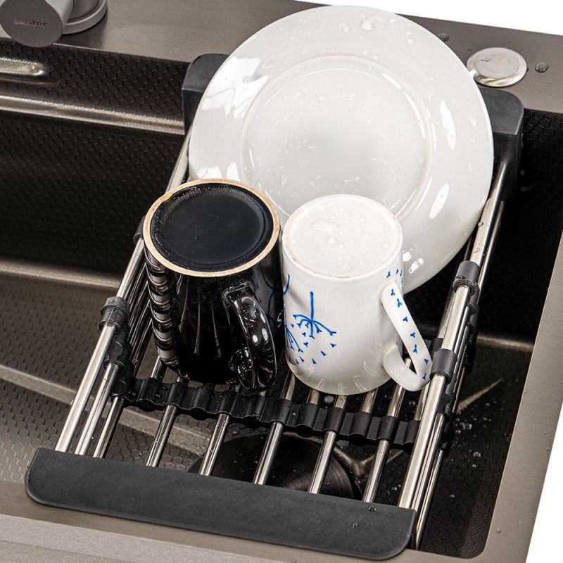 Mindennapos kihívás a konyhában: nincs elég hely az edények szárításához, a zöldségek és gyümölcsök mosása pedig kényelmetlen, miközben a pult kaotikussá válik. A folyamatos pakolgatás és helykeresés frusztráló lehet, különösen egy kisebb konyhában. A teleszkópos kosár rozsdamentes acélból és tartós ABS anyagból készült, amely ellenáll a korróziónak, így hosszú évekig szolgál a konyhában. Állítható kialakításának köszönhetően szinte bármilyen méretű mosogatóhoz illeszkedik (290–475 cm) beleértve a Leziter rozsdamentes mosogatókat is. Ideális edények szárítására, zöldségek és gyümölcsök mosására, valamint akár szűrőként is használható. A csúszásmentes támasztékok biztosítják a stabilitást, miközben stílusos fekete színe bármilyen konyhához illik.