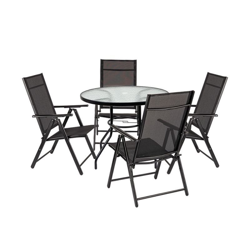 Tessa 4+1 kerti bútor garnitúra szettModern stílus és kivételes kényelem teraszon vagy az erkélyen. Ordino fémvázas üveg kerti asztalTulajdonságok: - Anyag: Tartós fémváz és áttetsző üveglap