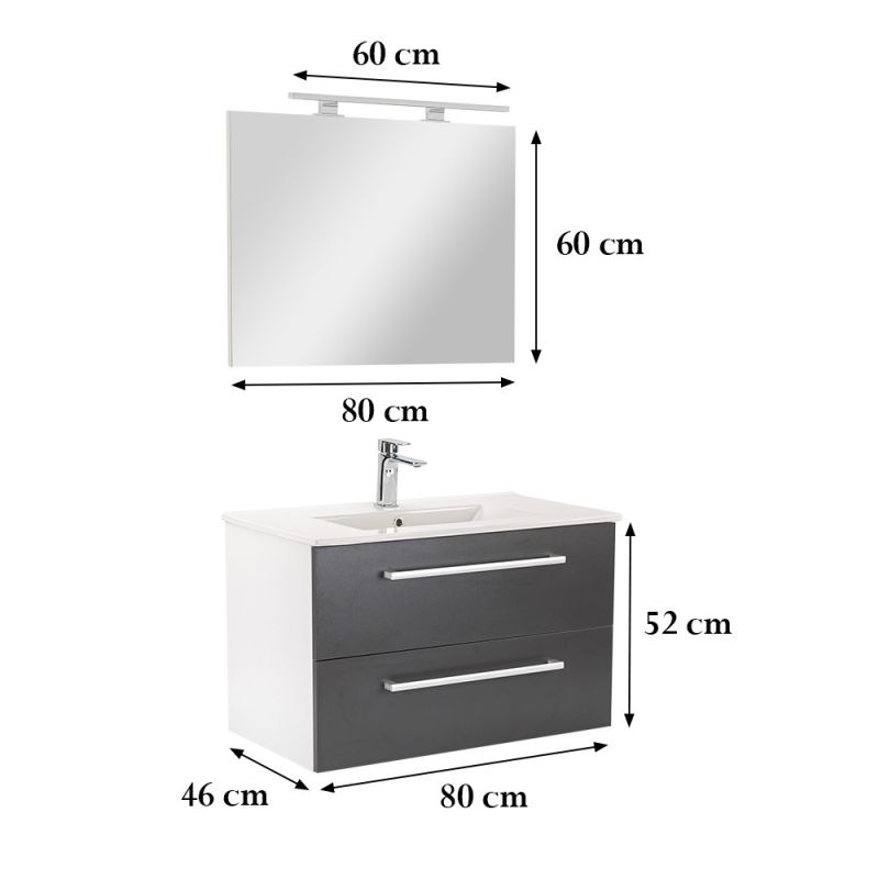 Vario Clam 80 komplett fürdőszoba bútor fehér-antracit - stílusos és modern fürdőszobabútor