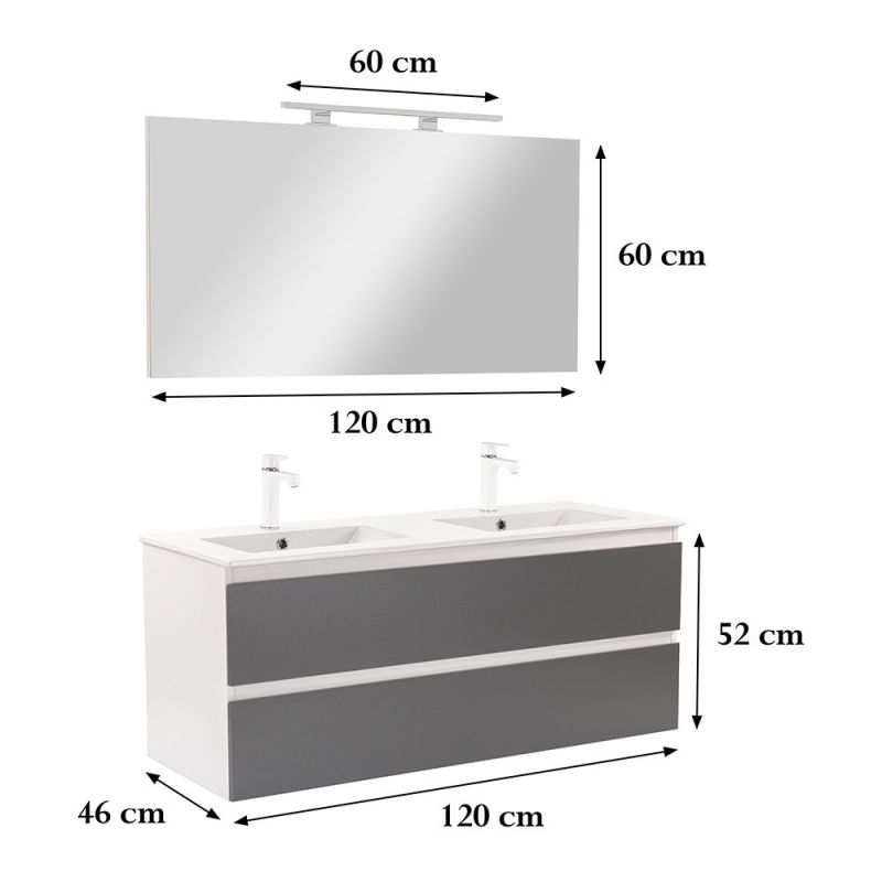 Vario Forte 120 komplett fürdőszoba bútor fehér-antracit - stílusos és modern fürdőszobabútor