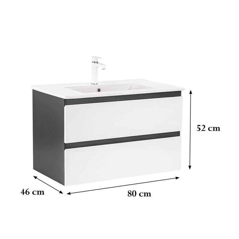 Vario Forte 80 antracit-fehér alsó szekrény mosdóval - stílusos és modern fürdőszobabútor