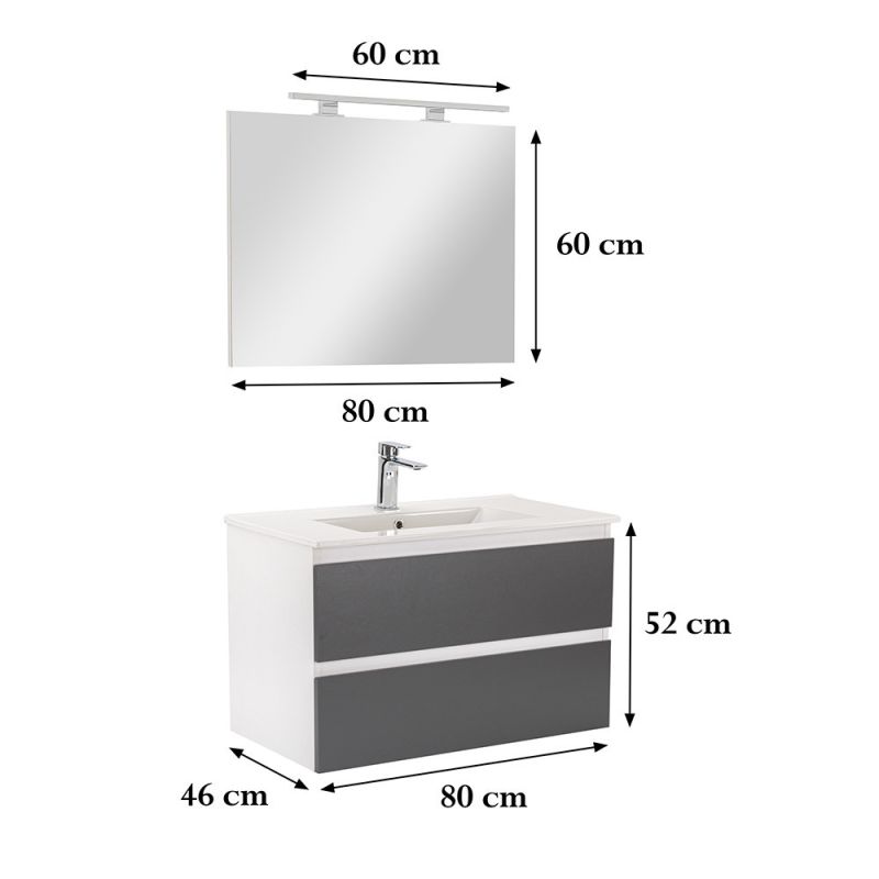 Vario Forte 80 komplett fürdőszoba bútor fehér-antracit - stílusos és modern fürdőszobabútor