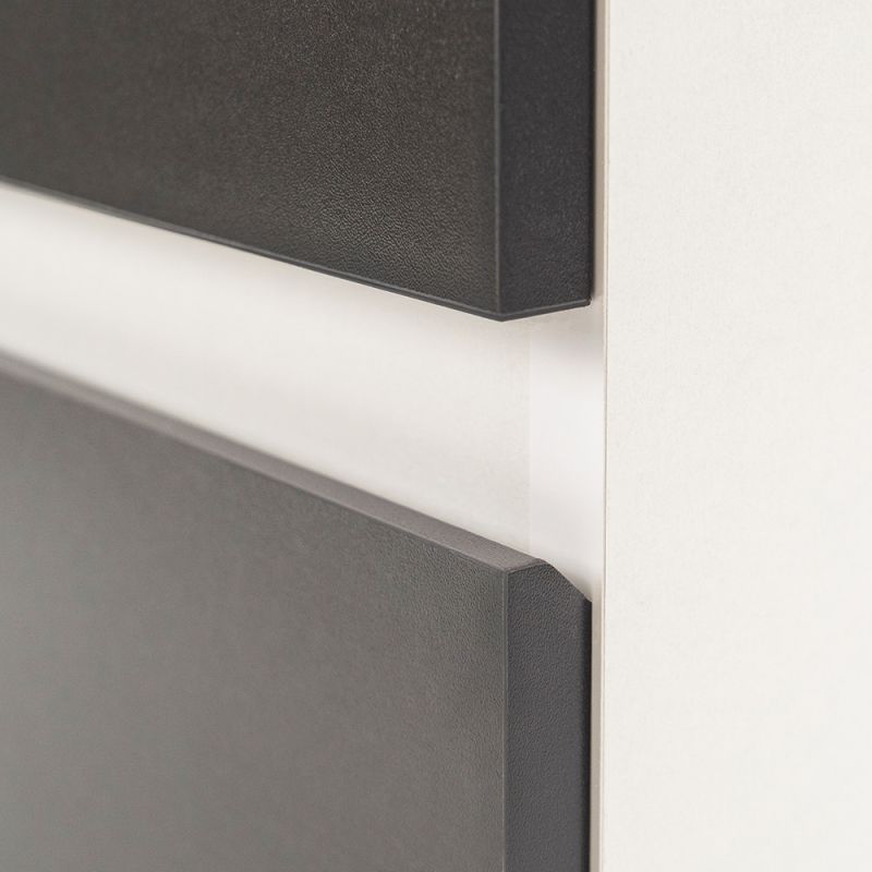 A fehér korpusz és a antracit front kombinációja elegáns és időtálló megjelenést kölcsönöz a bútornak.