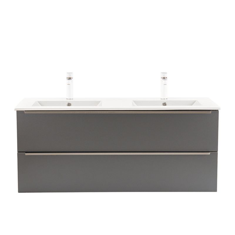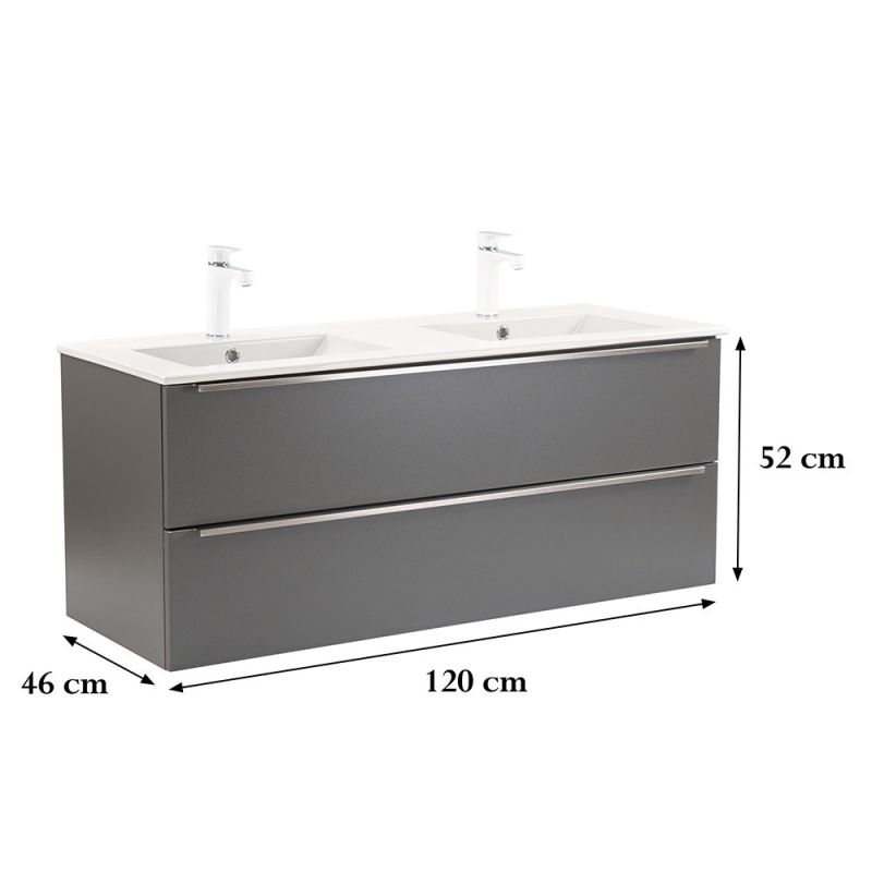 - Elegáns és praktikus mosdó: A bútor flat design kerámia mosdóval érkezik, amely kétmedencés kivitelű. Modern, esztétikus és könnyen tisztítható.