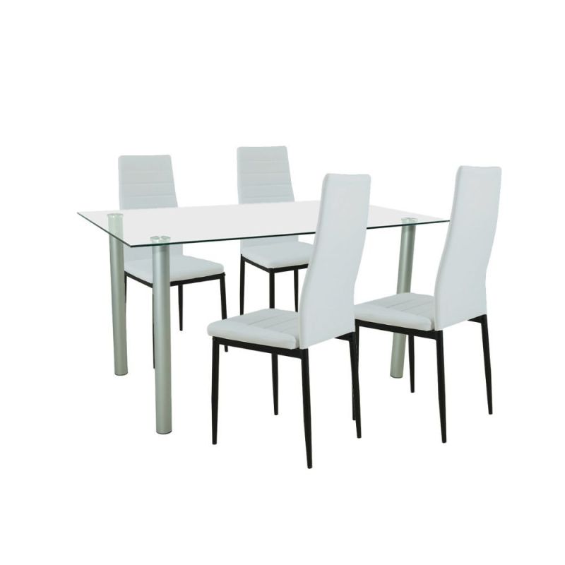 Verna 4+1 Étkező Garnitúra fehér-feketeModern eleganciát és kényelm a Verna Étkezőgarnitúrával| Jellemző | Berna Étkezőasztal | Tino NOVA Étkezőszék |