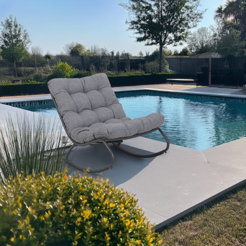 - A kerti szék ülőfelülete optimálisan profilozott, ami a vastag párnával és a ringatási lehetőséggel kombinálva magas szintű pihenést garantál