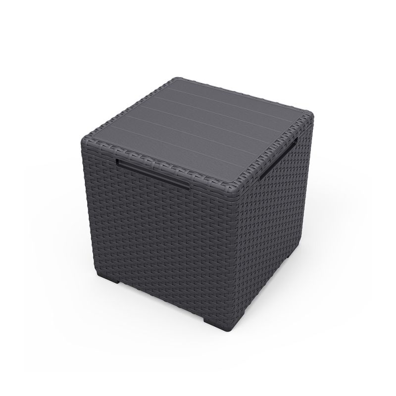 A Vigo kerti tárolós asztal tökéletes választás, ha egy több funkciós bútort keresel a teraszra vagy az erkélyre. A grafit színű, fonott megjelenésű asztal nemcsak egyedi és modern kiegészítője a teraszodnak, hanem hasznos tárolóhelyként is szolgál.