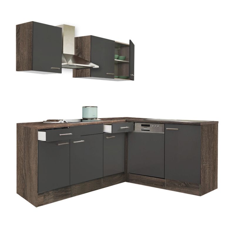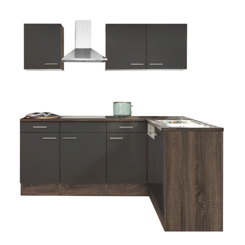 Yorki 220 sarok konyhablokk yorki tölgy korpusz, selyemfényű antracit fronttal. A tökéletes konyha megteremtője!