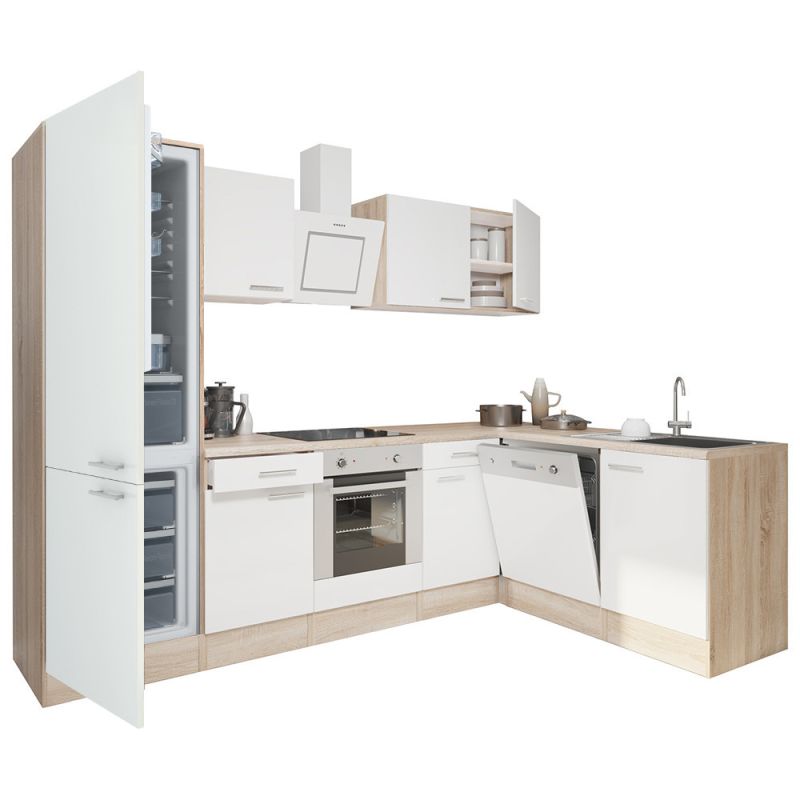 Yorki 280 sarok konyhablokk sonoma tölgy korpusz, selyemfényű fehér fronttal. A tökéletes konyha megteremtője!