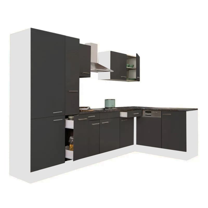 Yorki 310 sarok konyhablokk fehér korpusz, selyemfényű antracit fronttal. A tökéletes konyha megteremtője!