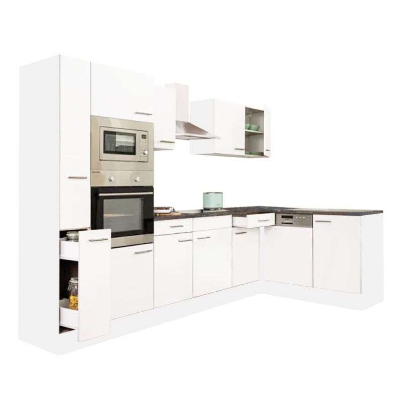 Yorki 310 sarok konyhablokk fehér korpusz, selyemfényű fehér fronttal. A tökéletes konyha megteremtője!