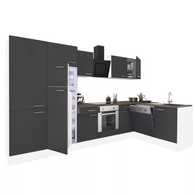 Yorki 340 sarok konyhablokk fehér korpusz, selyemfényű antracit fronttal. A tökéletes konyha megteremtője!