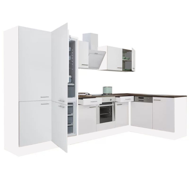 Yorki 340 sarok konyhablokk fehér korpusz,selyemfényű fehér fronttal. A tökéletes konyha megteremtője!