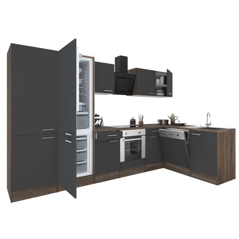 Yorki 340 sarok konyhablokk tögy korpusz, selyemfényű antracit fronttal. A tökéletes konyha megteremtője!