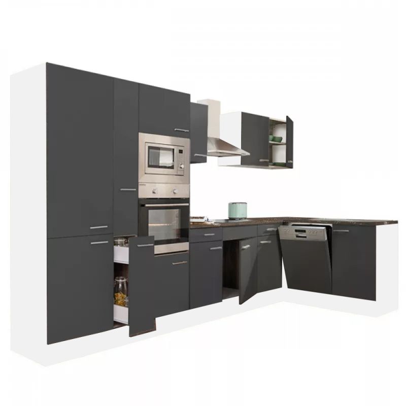 Yorki 370 sarok konyhablokk fehér korpusz, selyemfényű antracit fronttal. A tökéletes konyha megteremtője!