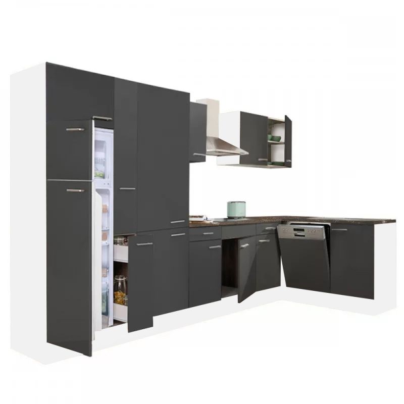 Yorki 370 sarok konyhablokk fehér korpusz, selyemfényű antracit fronttal. A tökéletes konyha megteremtője!