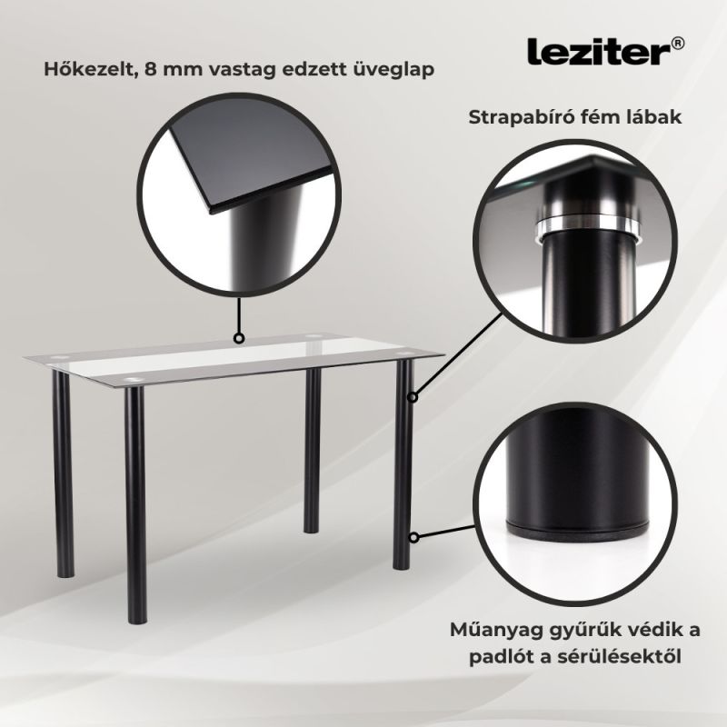 - Anyag: 8 mm vastag edzett üveg asztallap